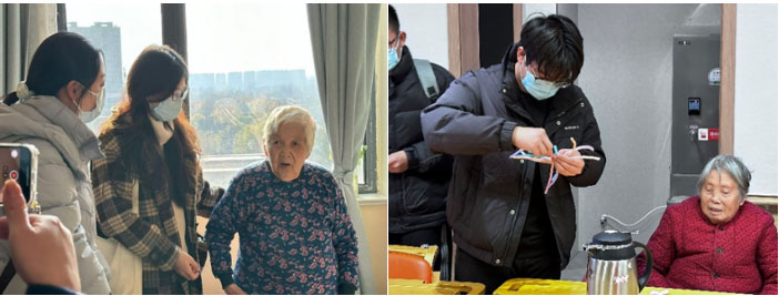 此次實踐活動,團隊走進了瑞芝康健古雄護理院。在養老服務交流會中,團隊成員深刻了解了瑞芝康健老年產業集團的企業文化和當下國家的養老政策,認識到古雄護理院以“建立新型社會養老服務體系,切實提高長者生活質量”為目標,融合“醫”“康”“養”“護”專業照護,為長者提供高品質的養老護理服務體驗。在工作人員的帶領下,團隊參觀了護理院各個樓層,與老人們進行了親切的交談。他們耐心傾聽老人們講述過去的故事,分享生活中的點滴趣事。老人們的話語中充滿了對往昔歲月的懷念和對現在生活的滿足,團隊也被老人們樂觀向上的精神所感染。
