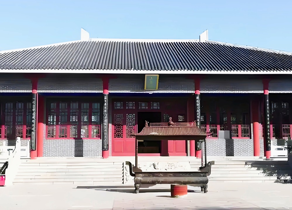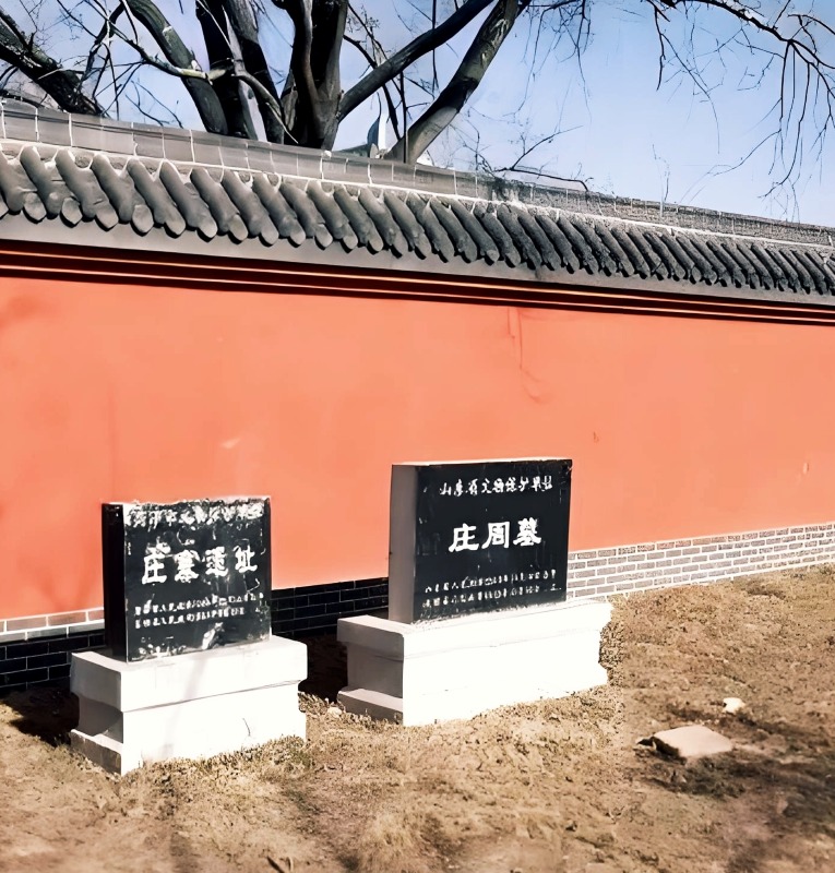 南華莊子觀是承載深厚道家底蘊的圣地,一入其中,仿佛是與千年前的道家智慧進行著一場跨越時空的對話。實踐隊員們走過有83個臺階的登云橋,便踏入了莊子觀,初入眼簾的便是那飛檐斗拱、雕梁畫棟的建筑。朱紅色的大門、青灰的磚瓦,經過歲月的洗禮,散發著獨特的歷史韻味,大門兩側有楹聯“逍遙漆園聽天籟道心潤澤百世,安貧南華著真經奇文傳誦九州”,它高度概括了莊子的人生經歷、思想精髓,讓實踐隊員們感受到了莊子思想的宏大與深邃。道觀內也有很多碑刻,字跡蒼勁有力,記錄著道家的發展歷程和歷代先賢對道家思想的傳承與解讀。進入大門后,實踐隊員們沿著蜿蜒的小徑前行,可以看到觀中草木錯落有致,可惜是冬天,實踐隊員們沒有看到花朵的盛開。向前行走,“南華殿”便映入眼簾,進入殿中,正中央是莊子像,兩側是六幅壁畫,畫著莊子的生平以及對其主要理論學說的記錄。出大殿便可參觀東殿堂與西殿堂,其中陳列著的是莊子在東明的遺存遺跡和莊子著作、思想文化交流活動的相關展示。在這里,實踐隊員們感受到了道家思想超脫、豁達、樂觀的人生態度,將對其后的生活與學習有著深遠的影響。穿過南華殿,大殿后面便是莊子墓,與莊子觀遙相輝映。