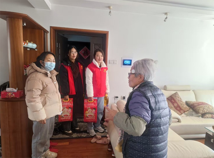 圖為實踐隊員為焦奶奶送上慰問品 實踐隊員 何思涵 供圖