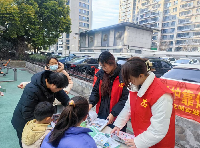 圖為志愿隊成員為居民發放垃圾分類宣傳冊 實踐隊員 何思涵 供圖