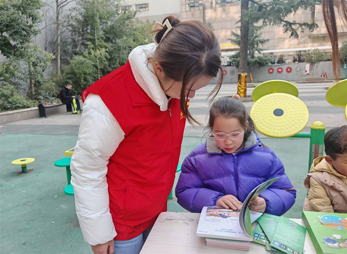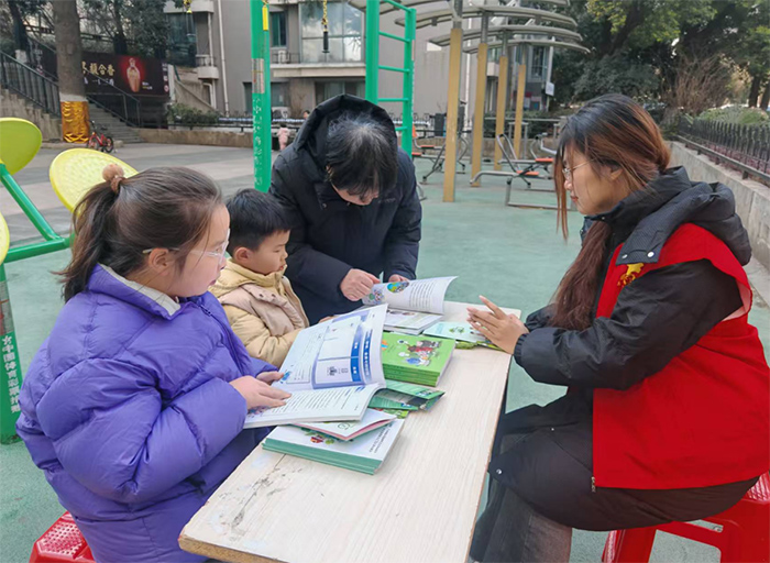 圖為志愿隊成員向居民講解垃圾分類宣傳冊的內容 實踐隊員 何思涵 供圖
