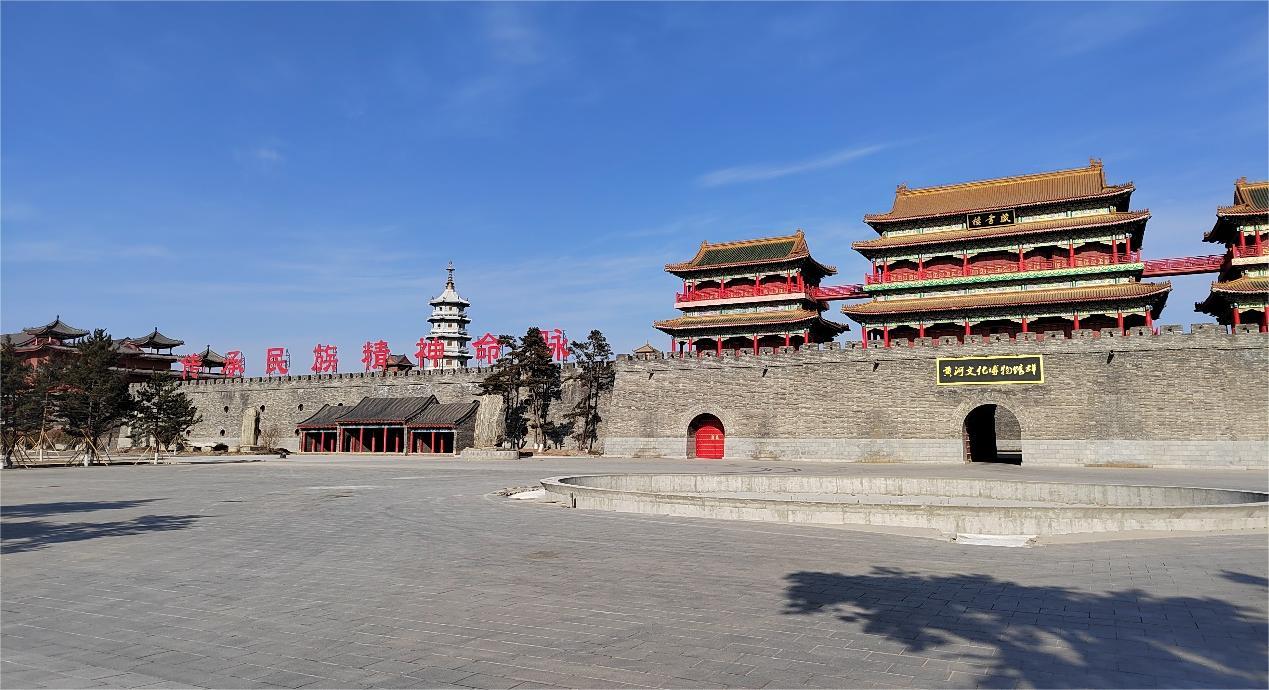 在探索齊河文化的過程中實踐隊員經過了黃河文化博物館群,但由于博物館還未竣工,只能在外面看到一排排充滿歷史感的建筑群。此前隊員了解到該博物館包含書畫藝術館、根雕藝術館、地礦博物館及黃河流域古生物化石館的古生物化石等,該博物館致力于黃河文化的保護和傳承,將黃河流域的歷史文化遺產進行系統整理和展示,深入挖掘黃河文化蘊含的時代價值,講好“黃河故事”,增強文化自信,為實現中華民族偉大復興的中國夢凝聚精神力量。