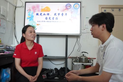圖為實(shí)踐隊(duì)隊(duì)員采訪康復(fù)老師徐紅玲毛昊宇攝