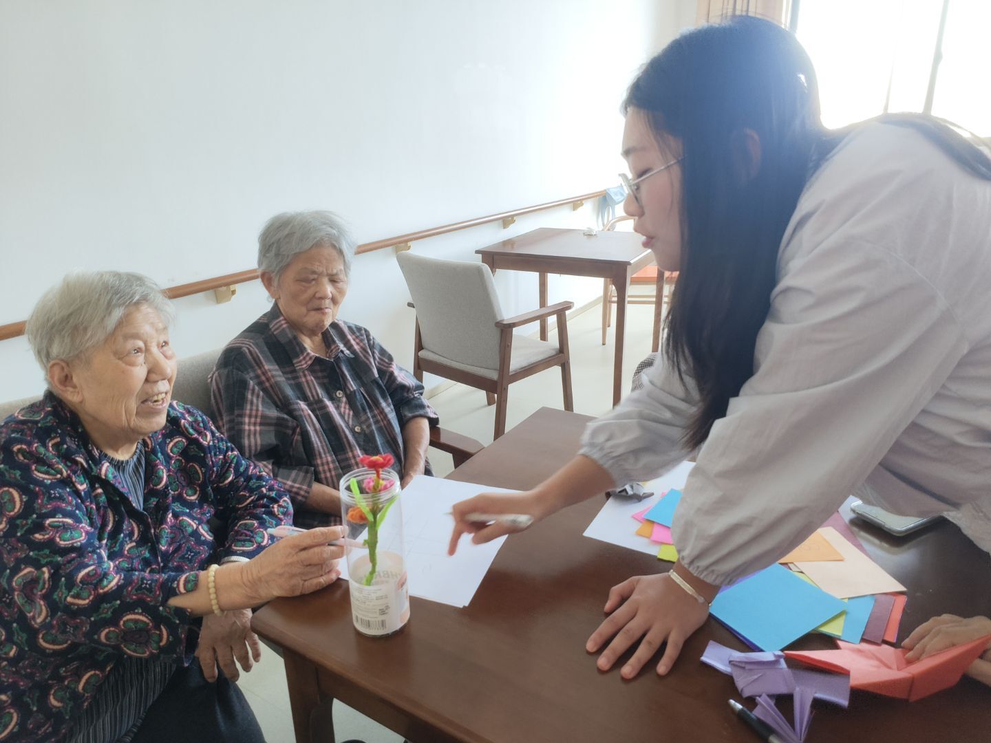 近日,安徽工業(yè)大學外國語學院夕陽紅實踐團走進養(yǎng)老機構,開展為期數(shù)天的關愛失智老人實踐活動。實踐團成員們各司其職,以專業(yè)且貼心的服務,為老人們的生活增添溫暖與色彩。