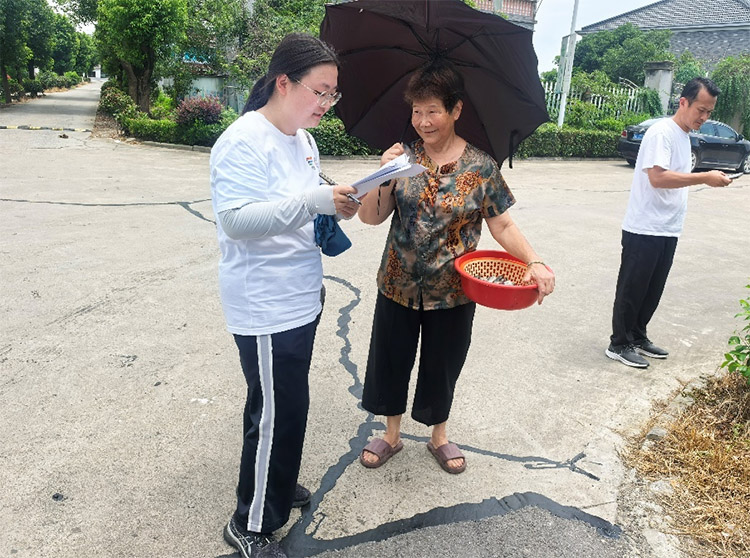 圖為浙里潯光實踐隊在采訪村民。邵朱穎 供圖