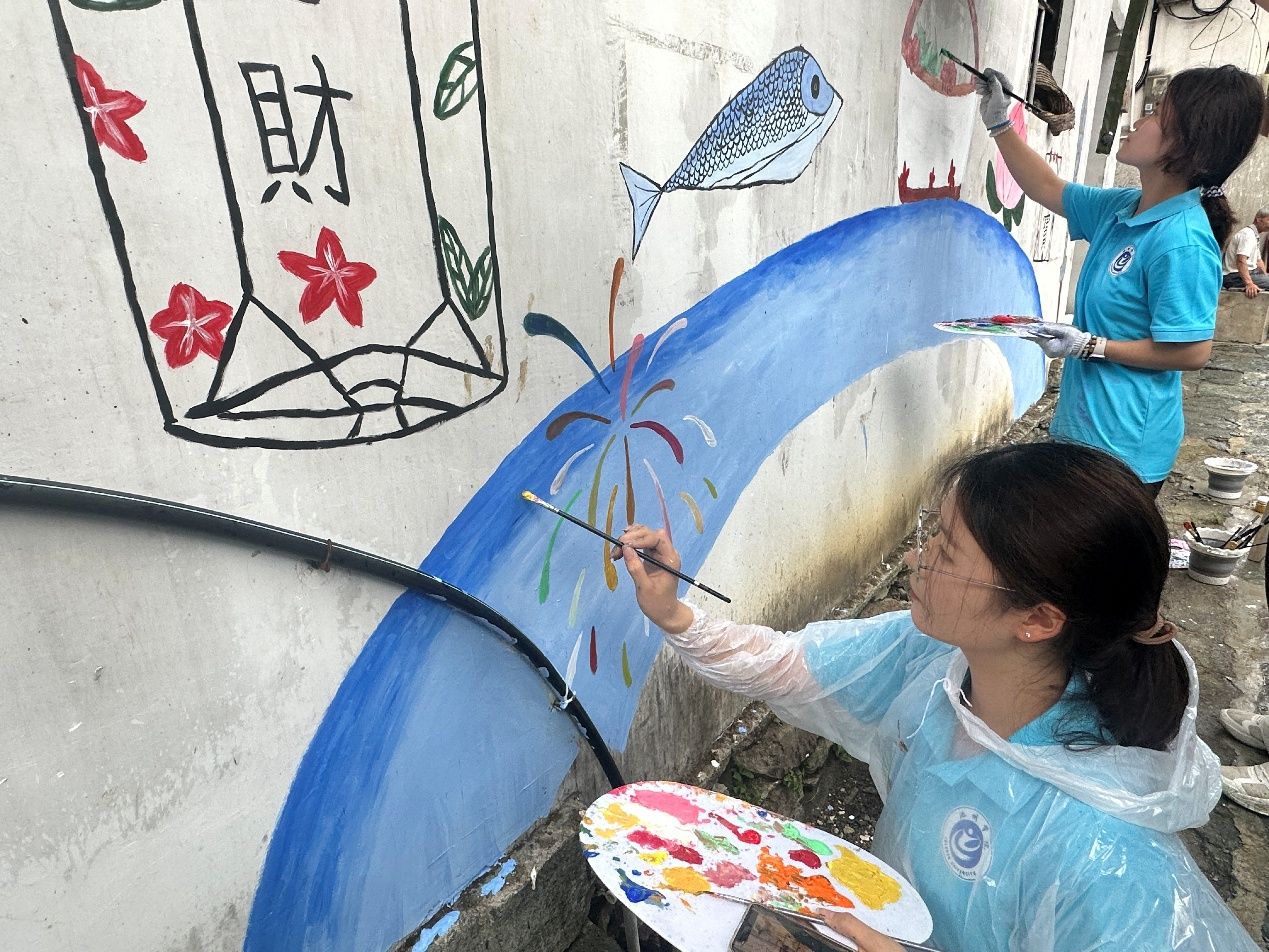 6月28日,池州學院赴黃山杞梓里“繪夢鄉村”實踐團時光流轉步履不停,實踐征程穩步前行。在暑期社會實踐活動開展的第四天,團隊持續深耕鄉村墻繪創作領域,以匠心勾勒藝術筆觸,用創意融合鄉土文化實踐征程中,團隊成員以傳承鄉土文化為己任,將非遺故事與藝術創作緊密交融。在今日的墻體繪制中,團隊深挖杞梓里千年地戲文化底蘊,以靈動筆觸再現當地獨有的麻痘燈盛景。畫面中,象征平安順遂的麻痘燈造型精巧,完美復刻了正月里鑼鼓喧天、燈影流轉的民俗畫卷。這些承載著九百年歷史記憶的藝術符號,不僅勾勒出杞梓里"保孩童安康,祈村落興旺"的美好愿景,更將地戲文化中忠義勇毅的精神內核融入現代鄉村風貌,讓古老民俗在墻繪藝術中煥發新生,成為連接傳統與未來的文化紐帶。此次以麻痘燈為主題的墻繪創作,不僅為杞梓里村增添了靈動鮮活的藝術風景,更是對千年非遺文化的創新性傳承與活化表達,生動詮釋了青年學子守護文化根脈、助力鄉村振興的使命擔當。黃山杞梓里“繪夢鄉村”實踐團將以此次創作為契機,進一步拓展校地協作深度,深挖鄉土文化富礦,用畫筆講好非遺故事,以藝術賦能文化振興。