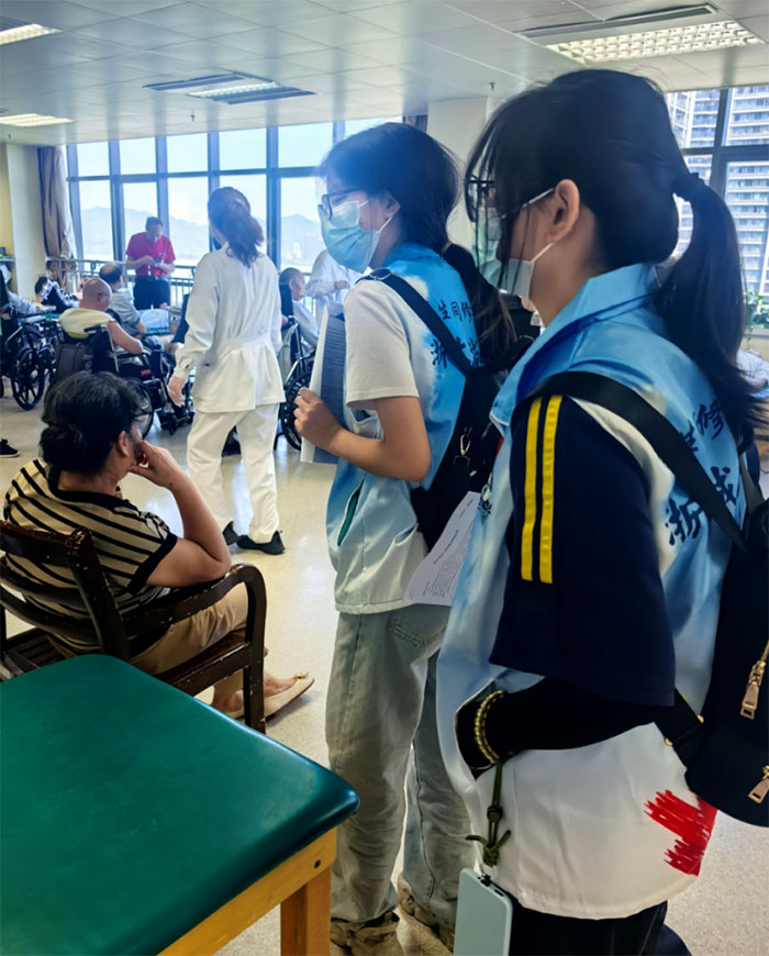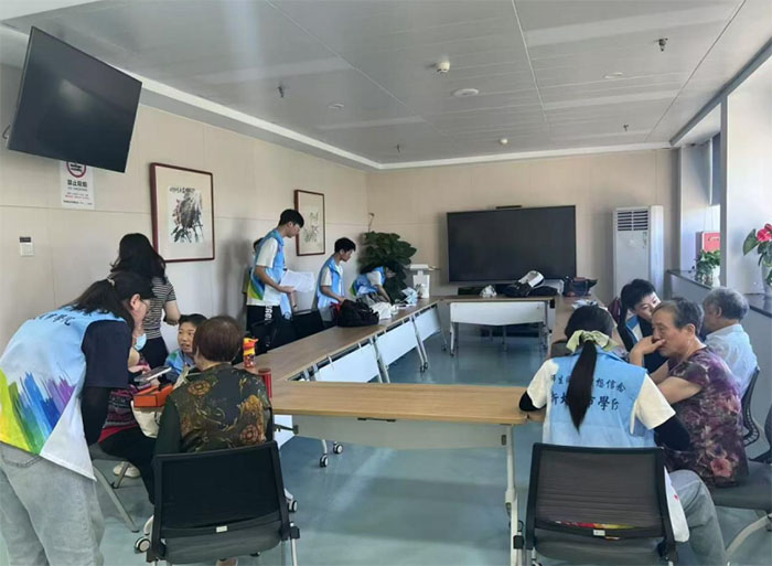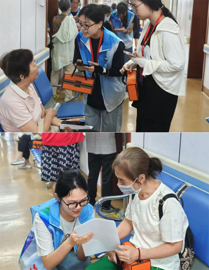 在浙江康復(fù)醫(yī)療中心,調(diào)研團(tuán)隊對陪同老人接受康復(fù)訓(xùn)練的家屬展開深度訪談;在浦沿街道,同學(xué)主要在體檢中心及周邊社區(qū),對不同年齡段的老年群體進(jìn)行隨機(jī)走訪。調(diào)研中,同學(xué)們了解到家庭養(yǎng)老的主要困境、家庭照護(hù)負(fù)擔(dān)、社會組織的賦能現(xiàn)狀以及對社會支持的期待。