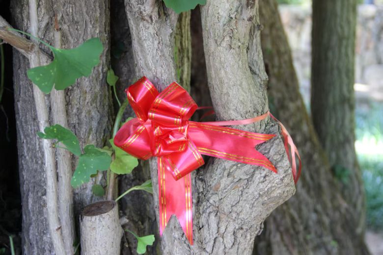 圖為古銀杏樹上的祈福紅繩 支沫帆通訊員攝
