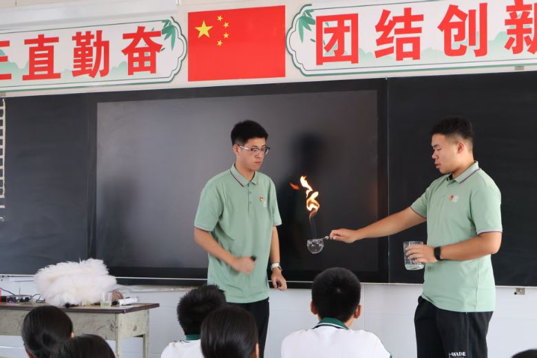 隨后的物理科普展示環(huán)節(jié)將更是將活動推向高潮。“哇,泡泡居然燃燒了!”“為什么小球不落下來,反而向上跑呢?”好奇探索的聲音此起彼伏。面對同學(xué)們的好奇,志愿者們用通俗易懂的語言進(jìn)行耐心解答,引導(dǎo)他們親身體驗。從疑惑不解到清楚明白,在場的同學(xué)們興奮地說:“以后我也要當(dāng)科學(xué)家,發(fā)明好多有趣好玩的東西。”