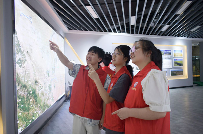 走進民勤縣治沙防沙紀念館開展實踐學習過程中,泛黃照片與影像資料真實呈現了昔日民勤的困境,風沙遮天蔽日,流沙吞沒房屋與農田,群眾生活舉步維艱。而現代成果展廳則展現出截然不同的景象。大幅照片墻上綠意盎然,沙盤模擬的紅柳林與生態農業園生機勃勃。森林覆蓋率從不足5%提升至18.28%,年減風沙300多萬噸的數據,直觀彰顯了治沙成效。參觀結束后,成員們紛紛表示,此次實踐深刻領悟到“人進沙退”的抗爭精神與“生態優先”的發展理念,未來將把這種精神融入學習與實踐中,為生態保護貢獻青春力量。