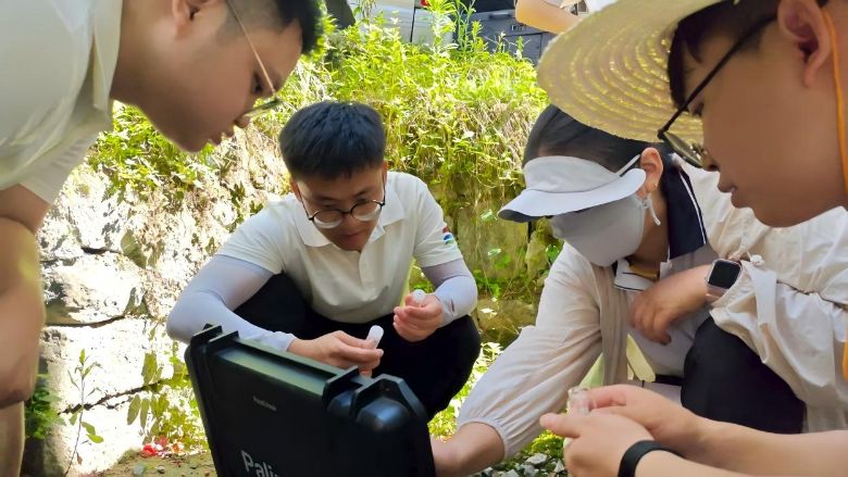 水資源組、金竹水廠及疾控中心三方合影百年古井:探尋鄉(xiāng)村原始水源7月5日,水資源組服務(wù)團(tuán)前往苗田村,面向村民開展以“保護(hù)水資源,共建生態(tài)家園”為主題的環(huán)保宣傳行動(dòng);顒(dòng)伊始,團(tuán)隊(duì)成員便在村務(wù)公開欄、主要路口及村民活動(dòng)中心等醒目位置,張貼了圖文并茂的環(huán)保宣傳海報(bào)。為了更精準(zhǔn)地把握村民在用水習(xí)慣和環(huán)保認(rèn)知上的現(xiàn)狀與痛點(diǎn),調(diào)研團(tuán)隊(duì)采取了“入戶走訪、面對(duì)面交流”的形式。隊(duì)員們攜帶精心設(shè)計(jì)的調(diào)查問卷,深入村民家中,耐心細(xì)致地與村民拉家常、聽心聲。不僅詳細(xì)詢問了村民日常取水方式(如自來水、井水、山泉水等)、用水量、飲水安全顧慮,還重點(diǎn)了解了村民對(duì)當(dāng)?shù)厮h(huán)境變化的感受、對(duì)水污染來源的認(rèn)知以及對(duì)保護(hù)措施的知曉程度。隨后,帶隊(duì)博士鄧淞勻、歐道剛以及組員周溢在當(dāng)?shù)卮迕裰敢,?duì)兩口具有百年歷史的古井進(jìn)行了水質(zhì)快檢。檢測(cè)結(jié)果顯示:井水pH值適中、濁度低、無異味,水體清澈見底,井中甚至可見小魚游動(dòng),這一充滿生機(jī)的景象,是水體健康、溶解氧充足、生態(tài)系統(tǒng)相對(duì)完整的生動(dòng)證明,直觀展示了古井水源良好的自然生態(tài)狀態(tài)。這些歷經(jīng)滄桑依然清澈的古井,不僅是歷史的饋贈(zèng),更是生態(tài)保護(hù)的典范,其可持續(xù)維護(hù)對(duì)于保障應(yīng)急水源、維系生態(tài)平衡、傳承鄉(xiāng)村文化具有不可替代的價(jià)值。