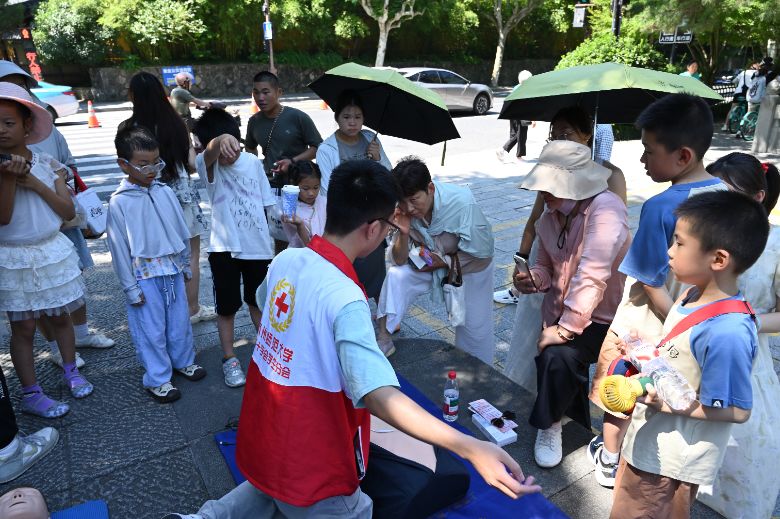 7月3日,我們杭州師范大學紅十字會學生分會走進杭州西湖景區鳳凰崗服務驛站,開展了一場以“急救知識進景區,守護生命在行動”為主題的急救知識宣傳活動,希望通過專業講解與實操指導,為景區內的市民和游客筑起一道生命安全防線。