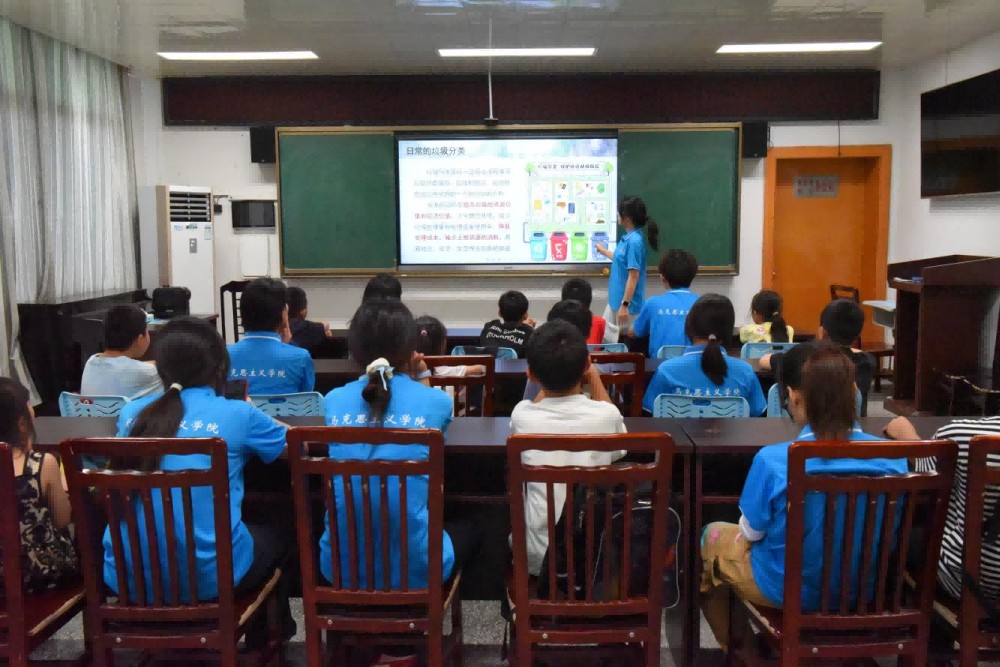 為增強小朋友的環保意識,普及垃圾分類知識,提升垃圾分類參與度,7月6日下午,馬克思主義學院“青春星火筑夢團”于重慶市涪陵區南沱鎮南沱中學開展以“童心協力,‘圾’時行動”為主題的“三下鄉筑夢課堂”活動。
