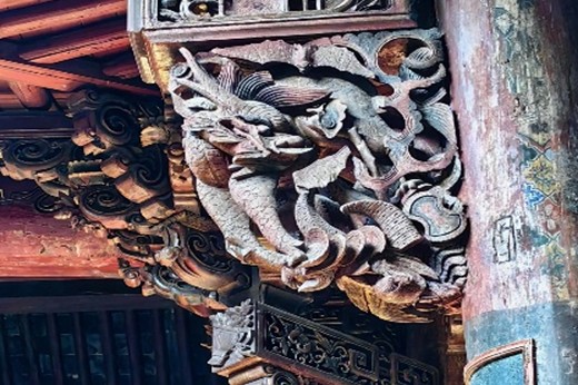 揭秘湯溪:扣響古建之門,穿梭百年時光(一)湯溪城隍廟:打開時光的雕花門扉6月29日午后,實踐團駐足于湯溪城隍廟朱紅門前?邕^斑駁的門檻,三重進深的院落次第鋪展,歇山頂飛檐如振翅玄鳥,斗拱間的彩繪雖歷經風雨,仍可見“八仙過海”“麒麟獻瑞”的靈動筆觸。團隊成員俯身細察月臺須彌座的浮雕,刀工遒勁的獅子滾繡球、鯉魚躍龍門圖案,將古人對祥瑞的祈愿凝固于磚石之上。同時相關成員對照城隍廟測繪圖紙,研究榫卯結構如何支撐起巍峨殿堂,廟內懸掛的泛黃的廟會老照片與祭祀器物,勾勒出往昔萬人空巷的熱鬧場景。輕撫廊柱上被歲月磨得發亮的紋理,觸摸照壁上殘留的鎏金痕跡,他們仿佛聽見百年前晨鐘暮鼓的回響,看見香客如織的盛景,在一磚一瓦間解碼湯溪人代代相傳的精神圖騰。