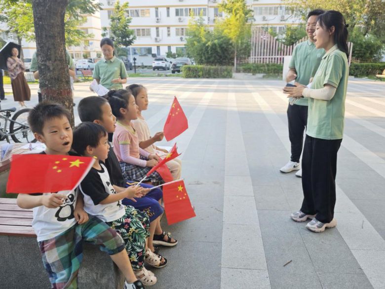 活動尾聲,孩子們手持五星紅旗,在宣講團成員的引領下齊聲高唱《義勇軍進行曲》,用稚嫩而堅定的歌聲表達對祖國的熱愛與敬意。