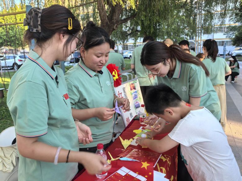 活動中,孩子們踴躍參與國旗知識問答,答對者贏取卡紙材料并親手制作小紅旗,在動手實踐中深化對國旗象征意義的理解;圍繞紅色精神或愛國主題,孩子們進行自由繪畫創作,一幅幅充滿童真與深情的畫作完成后,參與者獲贈紅旗小貼畫,用畫筆抒發愛國情懷;孩子們在彩紙上書寫對祖國的祝福,并將承載心愿的彩紙折疊成千紙鶴等美好形態,以此寄托對國家未來的誠摯祝愿。