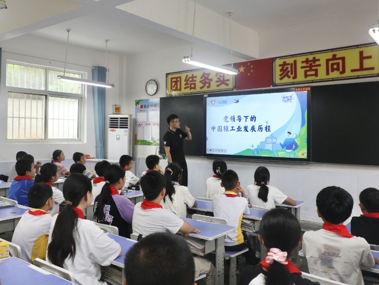 科普宣教是普及科學知識、弘揚科學精神的重要載體。實踐隊走進湘河中心小學,以“至臻講堂”科普宣講為抓手,圍繞“珍愛生命・預防溺水”“我的情緒我做主”“兩彈一星精神傳承”三大主題,構建“知識傳遞—能力培養—理想塑造”的幫扶體系,讓教育幫扶實效扎根鄉土校園。“活動不僅是知識傳遞,更是夢想播種。”校長李立談到,實踐隊通過“理論講解+互動體驗+精神引領”的創新形式,詮釋了教育幫扶的深層價值——唯有將知識賦能與精神鑄魂結合,才能在基層教育沃土中培育兼具家國情懷與創新能力的“鄉村振興后備力量”。