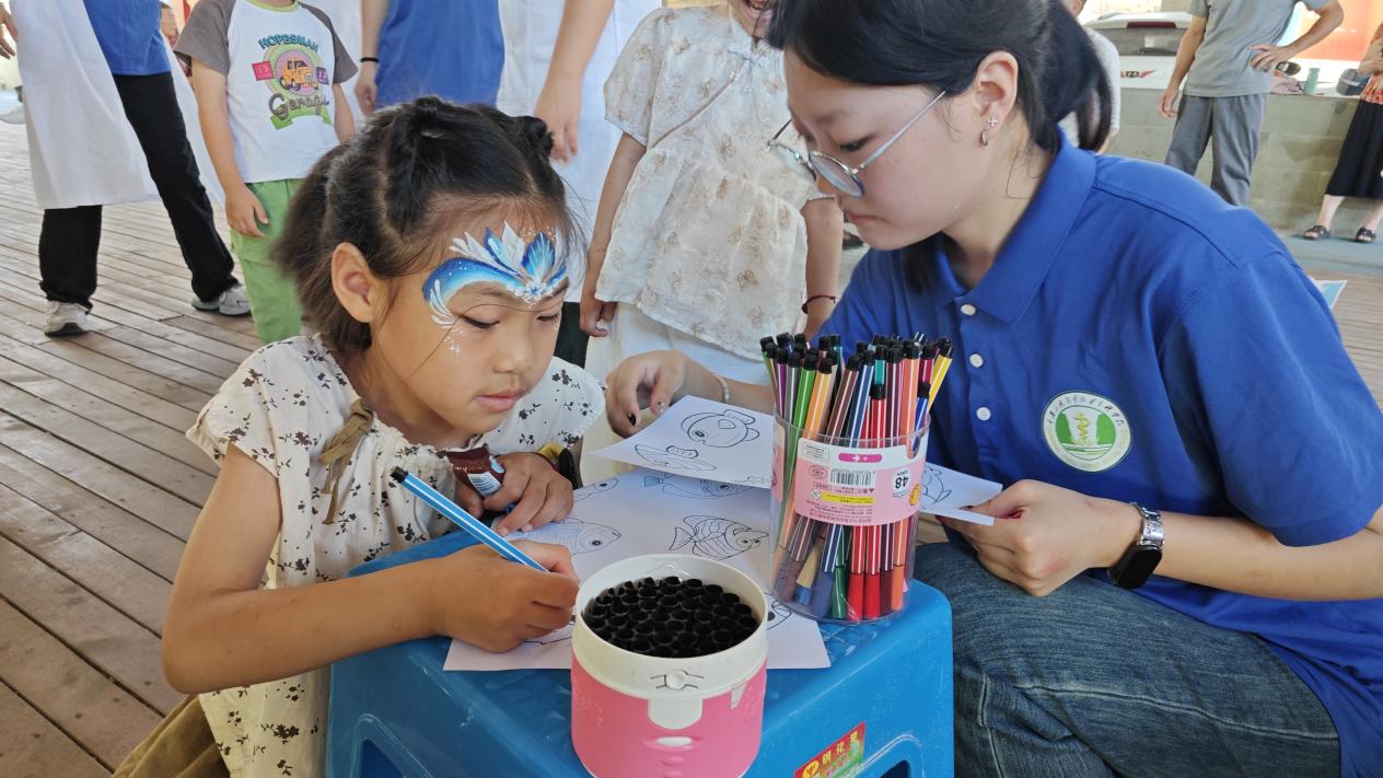 活動伊始,實(shí)踐團(tuán)隊向社區(qū)居民發(fā)放了關(guān)于普通話使用情況及能力的調(diào)查問卷,細(xì)致摸排社區(qū)語言環(huán)境。團(tuán)隊成員化身文化傳播的使者,創(chuàng)新推廣“非遺烤魚+普通話”融合模式,在社區(qū)居委會辦事大廳及廣場精心布置了兼具烤魚元素與推普內(nèi)容的主題海報,讓政策宣傳與文化展示相得益彰。為增強(qiáng)互動性與學(xué)習(xí)實(shí)效,現(xiàn)場特別設(shè)置繞口令趣味競賽、方言發(fā)音糾正等環(huán)節(jié),居民在輕松愉悅的氛圍中學(xué)習(xí)普通話,規(guī)范用語的熱情持續(xù)升溫。最后以社區(qū)兒童為受眾主體,開展以“烤魚”為特色的填色和折紙手工的制作活動。孩子們在動手操作中直觀感受到非遺的獨(dú)特魅力,傳統(tǒng)文化的種子在童真心靈中悄然扎根。