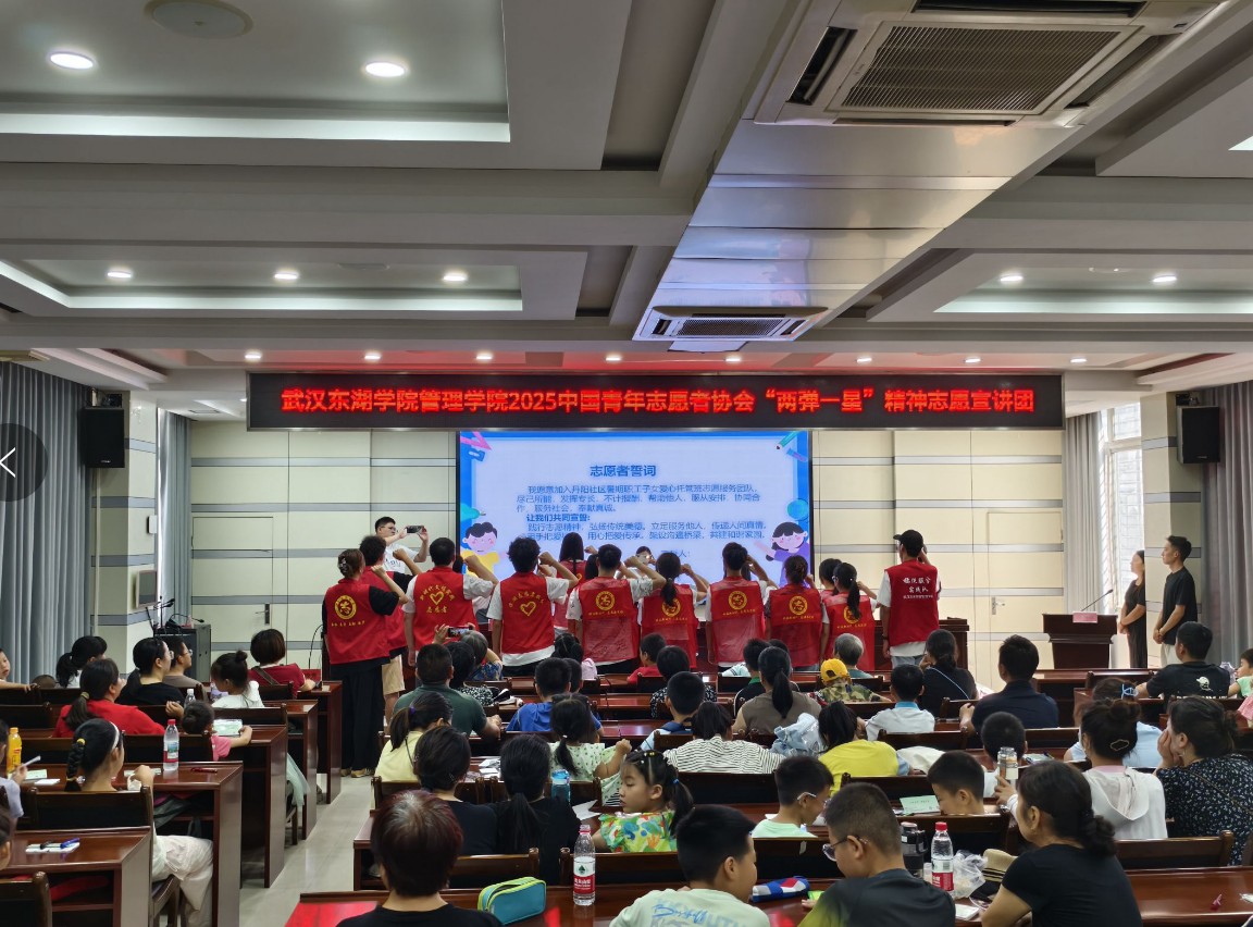 武漢東湖學院橘徠服兮實踐隊協助茅坪鎮丹陽社區“愛心托管班”盛大開幕暨“兩彈一星”精神志愿宣講團