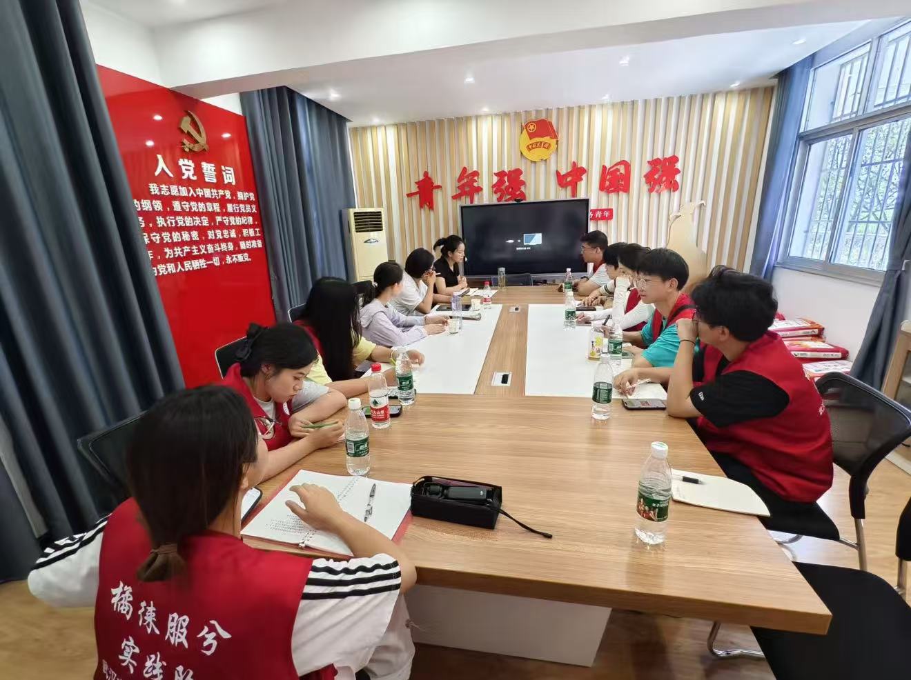 7月8日上午10點(diǎn)30分,武漢東湖學(xué)院“橘徠服兮”社會實(shí)踐隊來到共青團(tuán)秭歸縣委員會,圍繞移民文化傳承、后續(xù)實(shí)踐工作開展等事宜,與杜帥書記展開深入交流研討。