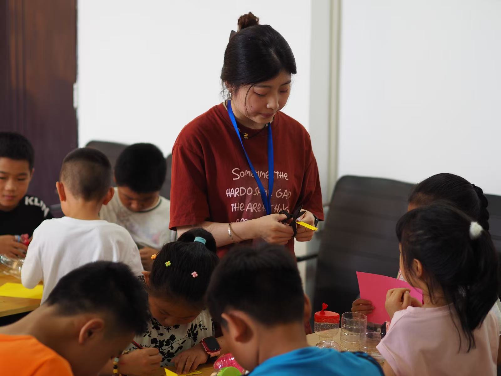 (圖為實踐隊員指導孩子動手操作。劉晶晶 供圖)