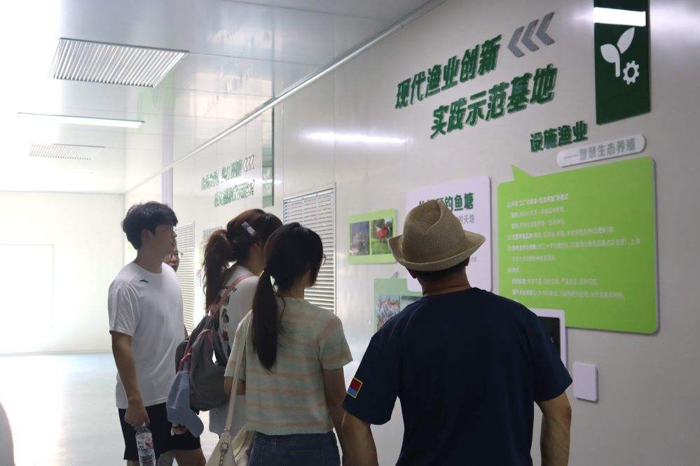 圖2嘉興大學鵲禾項目團隊成員跟隨村干部參觀中試基地