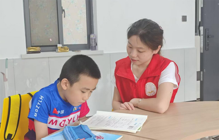 午后,實踐隊員們精心策劃的趣味活動,拂去了孩子們的疲憊。下午,隊員們化身嚴謹的“小老師”,仔細審閱每一份作業,以真誠的態度、細致的反饋,為孩子們的學習之路點亮明燈。最后,在充滿書香的閱讀課上,大家共同泛舟書海,分享著字里行間的感動與收獲。孩子們在書海中訴說著對文字的熱愛,一顆顆閱讀的種子,在心田里生根發芽。