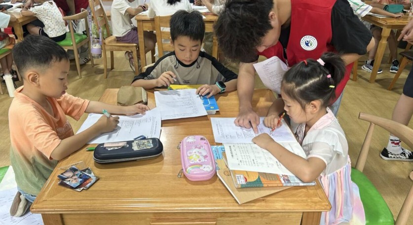 全天活動緊湊有序,不僅解決了學生們的學業問題,還通過多元化課程豐富了他們的暑期生活;顒咏Y束后,實踐隊召開總結會議,對當天的成效進行復盤,并制定了次日計劃。7月10日,隊員們將繼續在丹陽社區開展作業輔導,并新增心理健康和少數民族文化課程,進一步拓展學生們的視野。