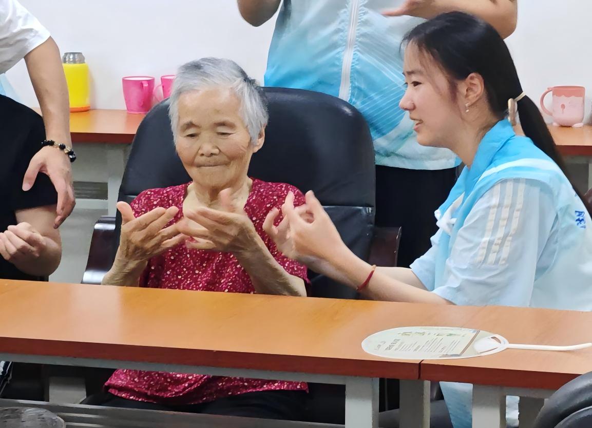 當(dāng)這一個游戲完了后,大家開始為爺爺奶奶唱"東方紅,太陽升..."志愿者們站成一排,有的拍著手打節(jié)拍,有的扯著嗓子領(lǐng)唱。當(dāng)唱到"他為人民謀幸福"時,幾位奶奶跟著抹眼淚,又笑著把淚擦掉。緊接著,《精忠報國》的旋律響起來,志愿者們的聲音陡然洪亮,"狼煙起,江山北望..."趙爺爺愣了愣,隨即跟著哼起來,雖然記不全詞,卻把"靖康恥,猶未雪"唱得字字鏗鏘。有志愿者拿出手機(jī)打光當(dāng)"熒光棒",老人們跟著晃拍手,活動室的天花板仿佛都被這跨越代際的歌聲掀開了一角,漏下滿地滾燙的回憶