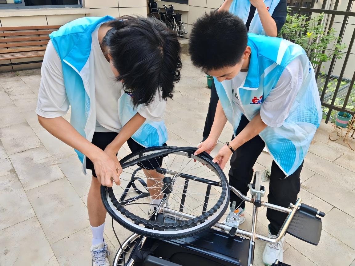 院子角落里,志愿者們正跟輪椅"較勁"。當(dāng)負(fù)責(zé)人把壞掉的輪椅拿出來,他們就趕緊上去修。陽光下,他們額頭的汗珠亮晶晶的。誰能想到,課堂上學(xué)的理論知識到了這里,都變成了讓輪椅更穩(wěn)、更安全、更舒服的竅門。這些年輕的汽車“修理工”知道,無論是修汽車還是修輪椅,核心都是讓“乘坐者”走得安穩(wěn)——這份專業(yè)里藏著的,從來都是對人的在意。他們手里的工具叮當(dāng)響,像在奏一首"修理交響曲"