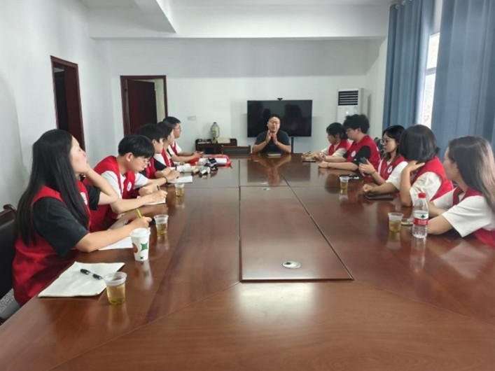 圖為橘?gòu)品鈱?shí)踐隊(duì)與杜書(shū)記展開(kāi)座談會(huì)