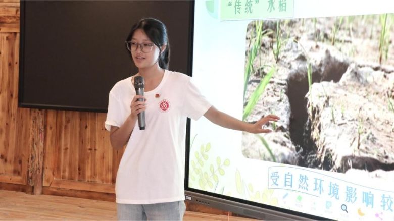 隨后,陳志奕同學以當地特色農產品貢米為紐帶,從稻谷起源娓娓道來,串聯起傳統水稻的發展脈絡。她著重講述了袁隆平院士的攻關事跡,從他在田間地頭不懈探索,到成功培育出高產雜交水稻,喚起孩子們對糧食安全的珍視;并緊扣何家巖村水稻特色,解讀種植科學,讓生態之美與科普之光交融,讓孩子們在感知鄉土作物中,讀懂科技賦能農業的深遠意義。