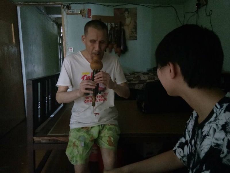 ·2017年和2018年,志愿者們定期到湯叔叔家中開展音樂互動。湯叔叔雖然從未接受專業訓練,卻能通過自學為同學們演奏完整曲目。