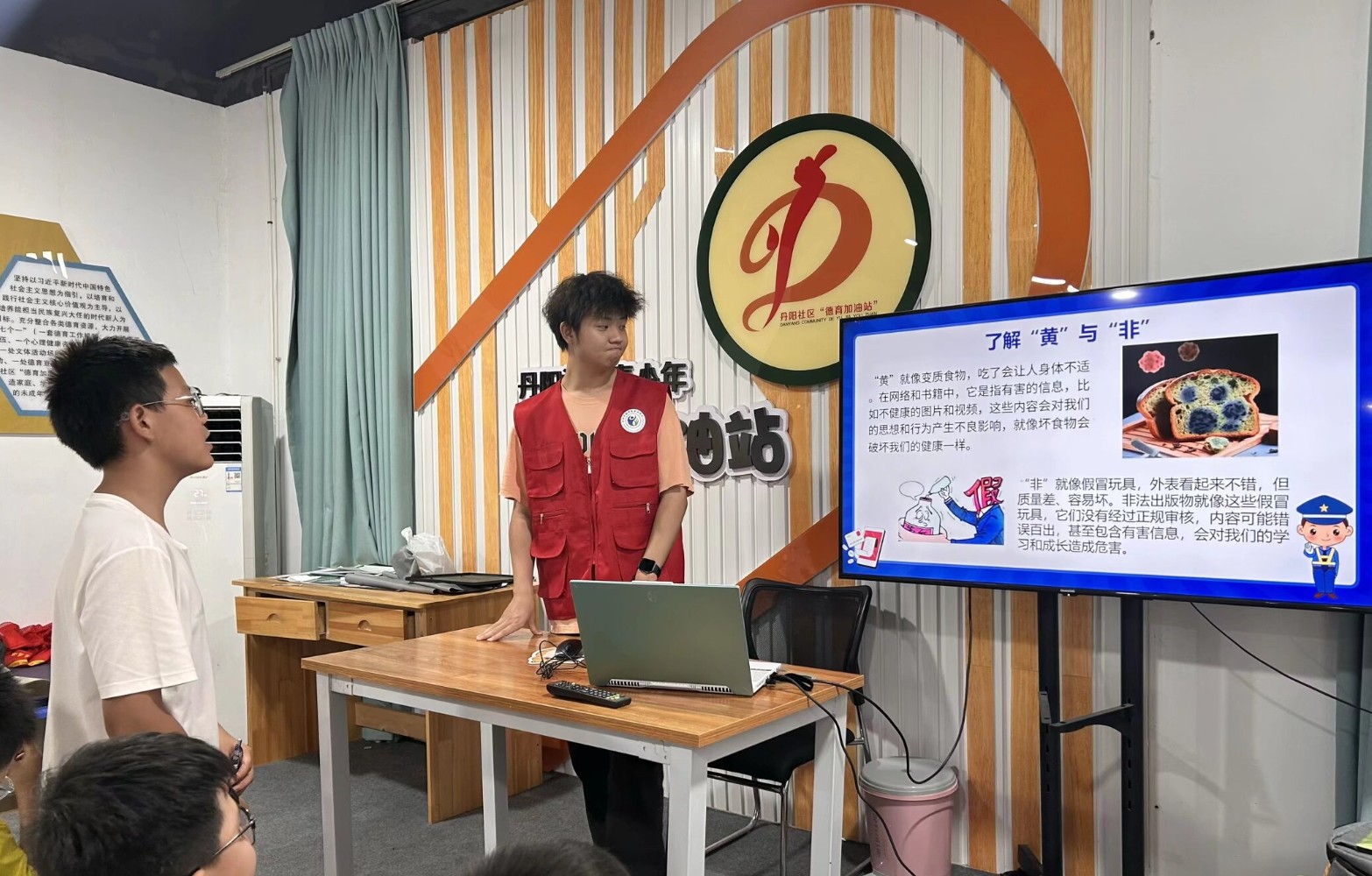 下午的托管班則充滿了書香與文化的芬芳。實踐隊精心策劃并開展了“掃黃打非·護苗成長”系列讀書分享活動,在"掃黃打非"讀書分享活動中,志愿者們通過生動有趣的講解、互動問答和好書推薦,先向學生們講解 "掃黃打非"的基本概念和重要意義,引導學生認識到不良出版物和有害信息的危害,向孩子們普及了識別非法出版物、抵制有害信息、保護知識產權、文明上網等知識,引導他們樹立正確的閱讀觀和網絡觀,自覺遠離文化垃圾,在純凈的閱讀環境中健康成長。