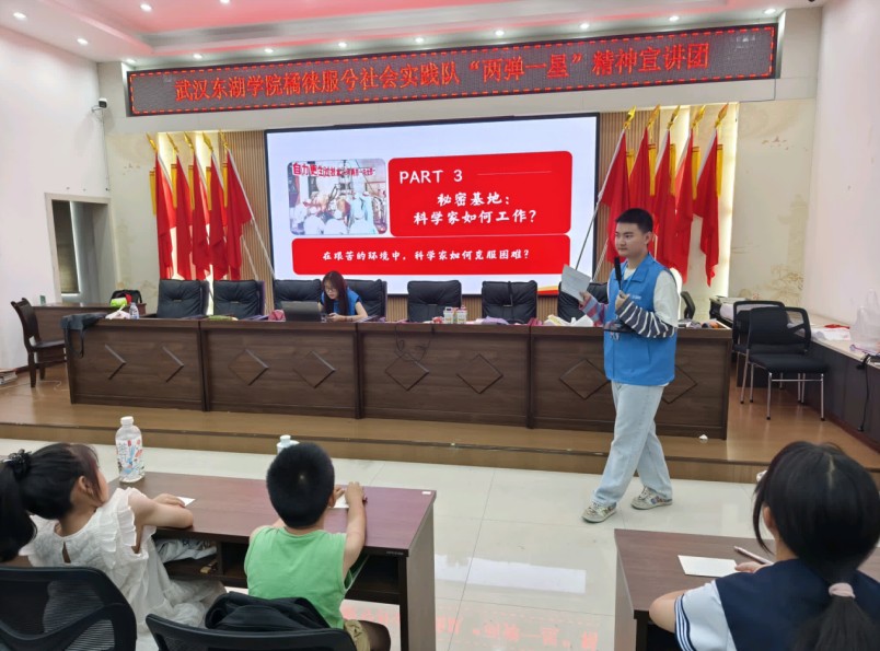 2025年7月10日,武漢東湖學院橘徠服兮實踐隊“兩彈一星”精神宣講團來到了秭歸縣金缸城村進行宣講活動。