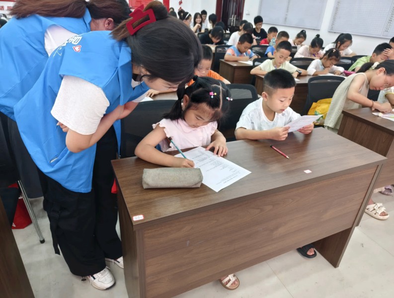宣講開始后,宣講團隊員向社區小朋友發放調查問卷,了解小朋友對“兩彈一星”的了解情況。