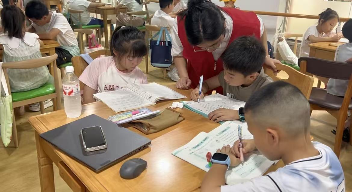 9:30隊員們針對學生課業難題開展一對一輔導,重點講解數學、語文等學科知識點,幫助學生梳理思路、鞏固基礎。學生們積極提問,課堂氛圍活躍。