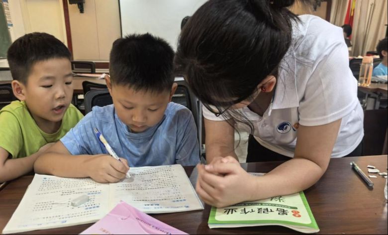 活動的最后環節,是志愿者們雷打不動的“作業輔導”時間。面對孩子們帶回來的課業任務,志愿者們分組行動,耐心細致地為孩子們提供一對一的輔導。他們或輕聲講解數學題的解題思路,或指導語文生字的書寫規范,或陪伴進行英語單詞的朗讀記憶。遇到難題時,志愿者們不是直接給出答案,而是循循善誘,引導孩子們自己思考,找到解決問題的“鑰匙”。安靜專注的學習氛圍里,志愿者們認真的態度和有效的輔導方法,為孩子們的學業進步提供了堅實的支持,也傳遞了溫暖的陪伴與關懷。