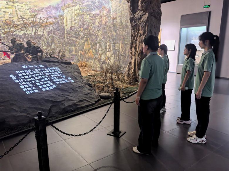 步入平原博物館,成員們在參觀“牧野華章——新鄉歷史文物陳列”展廳的過程中,借助新石器時代至明清時期的珍貴文物,深入了解了新鄉深厚的歷史文化底蘊。展廳內特別展出的泛黃抗戰家書、承載信念的簡陋武器等英雄壯舉的圖文史料,生動再現了新鄉地區風起云涌的革命歲月和艱苦卓絕的斗爭歷程。這些感人的革命事跡與歷史文物交相輝映,讓成員們深刻感受到革命先輩為民族獨立和人民解放所展現的堅定信仰與無畏犧牲精神。