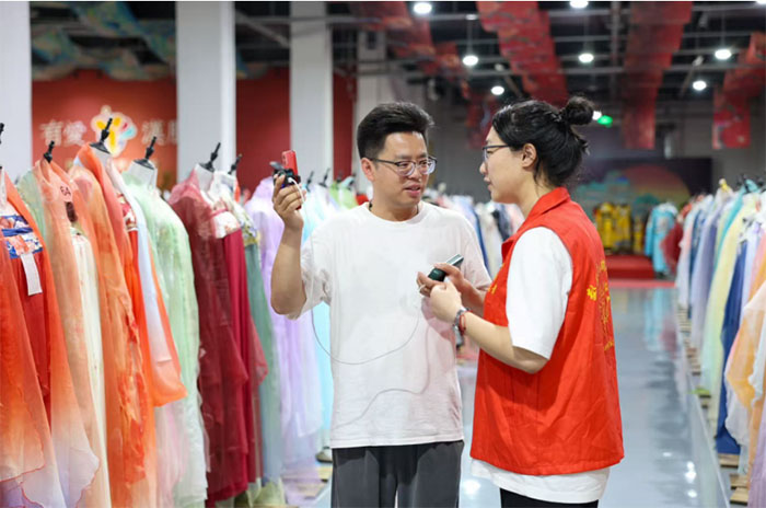 隨后,團隊來到曹縣有愛云倉漢服基地深度體驗了漢服的生產流程。曹縣憑借其電商資源優勢,聚力發展漢服產業,形成了涵蓋原創研發、設計制作、裁剪打版、繡花印花、展演銷售的完整產業鏈條。在這里,成員們親眼見證了傳統工藝與現代生產技術的完美結合,深刻體會到生產環節中對數據精準把控的重要性。這種傳統與現代的融合,不僅提升了漢服的生產效率,也為傳統文化的傳承注入了新的活力。