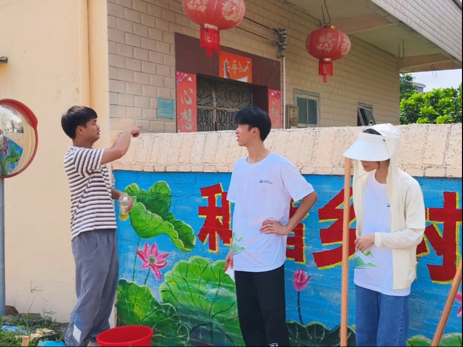 志愿服務期間,突擊隊隊員與鄉村墻繪工作者龍仔進行交流,他與突擊隊成員分享鄉村振興經驗,雙方在思想碰撞中凝聚起對農村新建設的共識與期待。