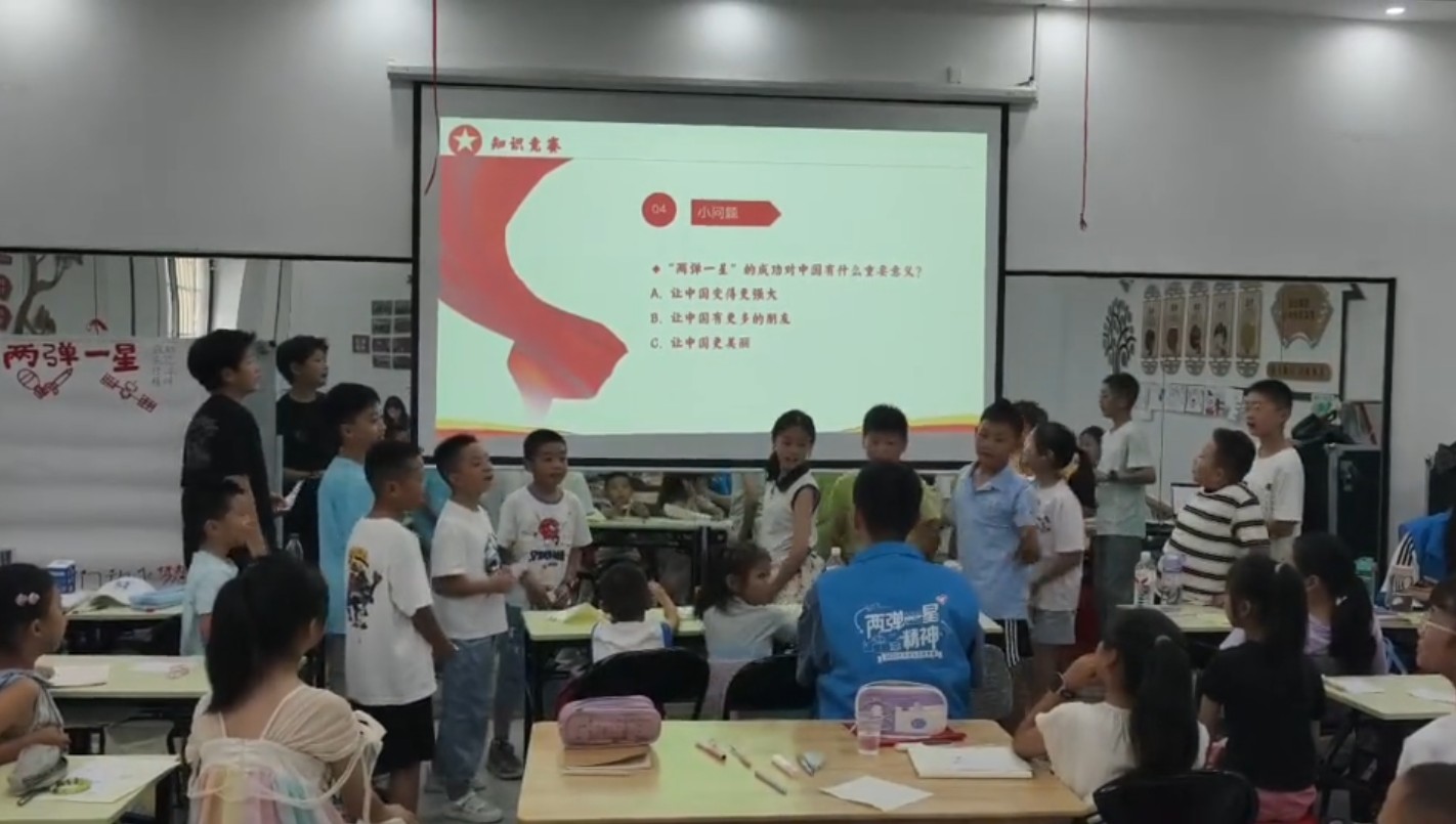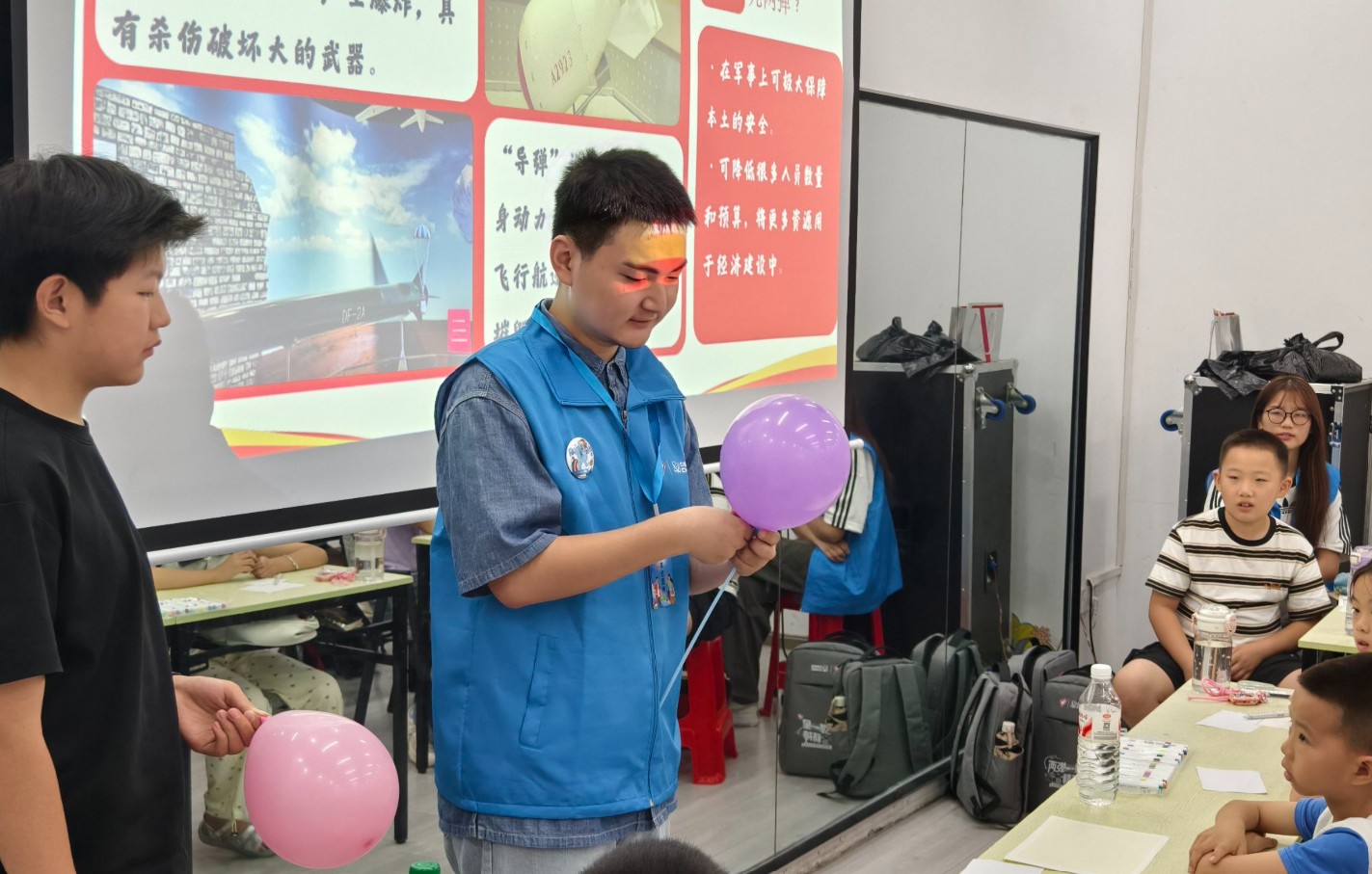 在隨后的宣講課堂中,宣講團成員以用氣球模擬“兩彈”,生動形象的給學(xué)生們講解“兩彈一星”的相關(guān)知識