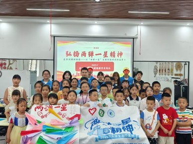 學(xué)生們在彩紙上書寫對兩彈一星功勛人物的感謝,并將其折成紙飛機,寄托著對英雄人物的崇拜。