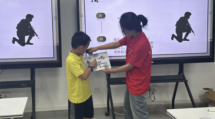 在開(kāi)展軍事科普教育活動(dòng)的過(guò)程中,實(shí)踐隊(duì)成員以“小小科學(xué)家”為主題,引導(dǎo)兒童深入探索現(xiàn)代武器的相關(guān)知識(shí),并激發(fā)他們主動(dòng)參與的熱情,繪制出他們想象中的武器設(shè)計(jì)圖,并分享其創(chuàng)作理念。實(shí)踐隊(duì)隊(duì)員采用深入淺出的講解方式,詳細(xì)介紹了現(xiàn)代兵器知識(shí),涵蓋步槍、坦克、潛艇及戰(zhàn)斗機(jī)等軍事裝備。她運(yùn)用通俗易懂的語(yǔ)言,幫助孩子們對(duì)這些軍事裝備形成了更為深刻的認(rèn)知。