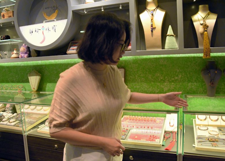 設計師吳柳為調研團隊介紹涪州結繩展銷中心的文創(chuàng)作品。這些手工藝品中不僅有采用結繩工藝的發(fā)簪、手鏈、項鏈,還有與傳統(tǒng)中醫(yī)藥結合的結繩香錘、迎合年輕人喜好的結繩公仔、具有地域特色的“白鶴時鳴”等系列作品。