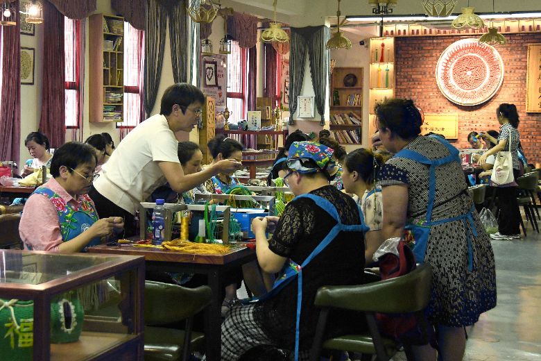 涪州結繩代表性傳承人胡饒通過創(chuàng)立中華傳統(tǒng)文化企業(yè)、國潮文創(chuàng)品牌,帶領勤勞智慧的涪州結繩巧娘,傳播中國結繩文化,將家族傳承的“指尖記憶”變成福澤一方的“指尖經(jīng)濟”。