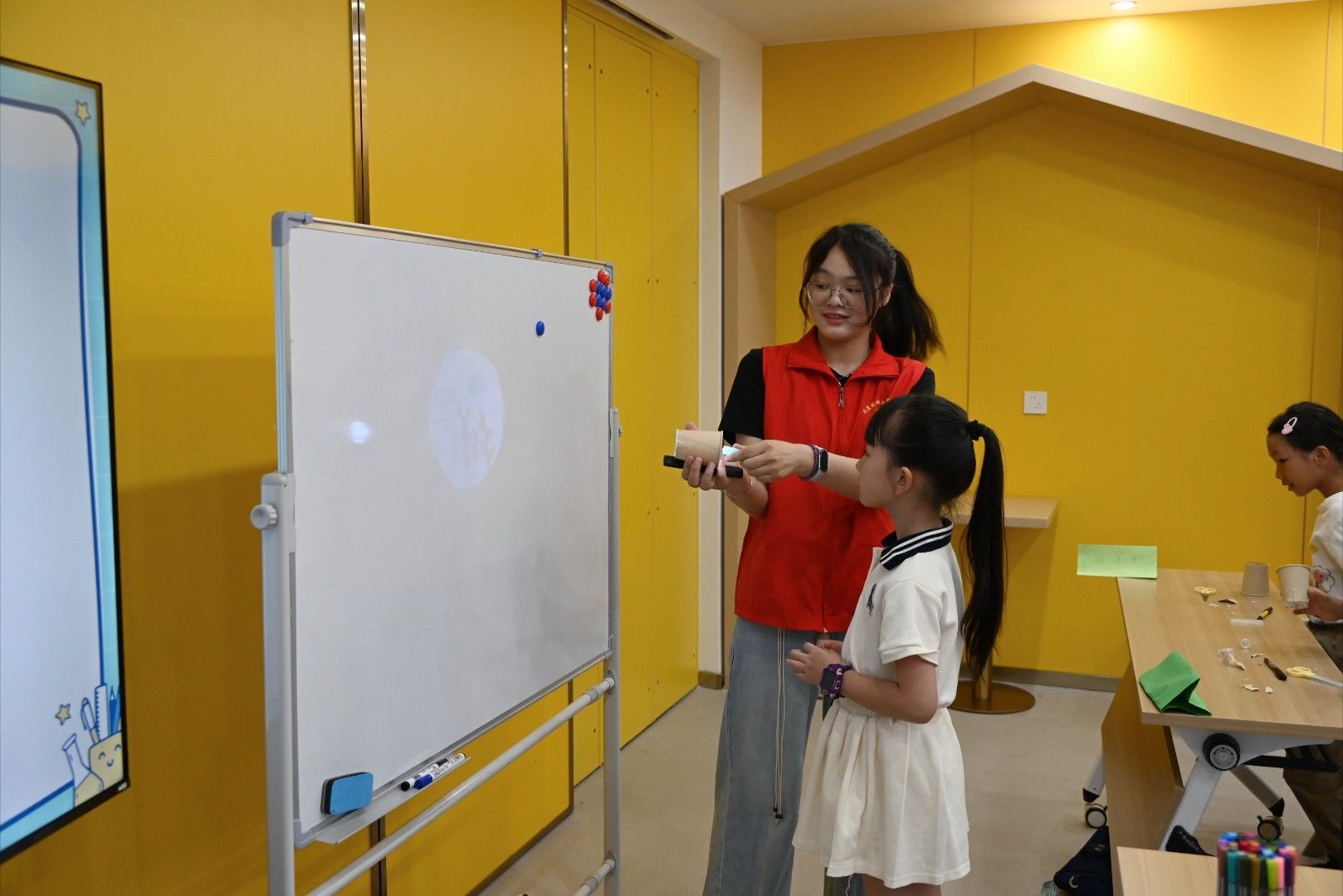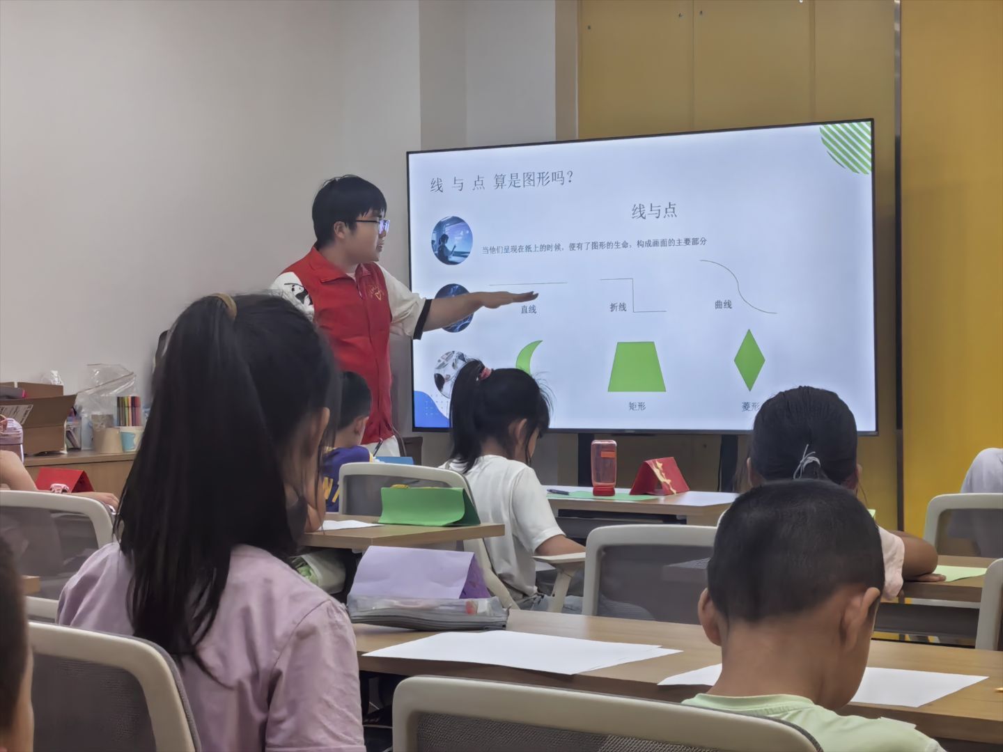 2025年7月8日,福建農(nóng)林大學風景園林與藝術(shù)學院赴福州市倉山區(qū)建新鎮(zhèn)金霞社區(qū)支教實踐隊,在福州市倉山區(qū)建新鎮(zhèn)金霞社區(qū),以青春熱情和專業(yè)學識,迎來實踐的第二天。實踐隊員們成功實現(xiàn)從在校大學生到“孩子王”的角色蛻變,他們充分發(fā)揮風景園林、藝術(shù)設(shè)計等專業(yè)優(yōu)勢,融合個人特長,精心打造了涵蓋“德智體美勞”多領(lǐng)域的全天候課程體系。上午,金霞社區(qū)的孩子們在趣味剪紙中感受指尖藝術(shù)的魅力,于科學課上探索未知奧秘,更在互動游戲中收獲協(xié)作與運動的快樂;下午,圖形魔法課點燃了空間想象的思維火花,心靈成長課以專業(yè)視角守護稚嫩心田,悠揚的音樂課則開啟了藝術(shù)啟蒙之門。