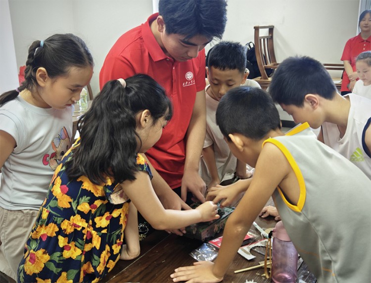 在實踐活動過程中,孩子們在實踐隊員的協助下,親身體驗了日晷的制作流程,從繪制刻度到安裝指針,深刻體會到了古代人民在觀測天象、計量時間方面的智慧結晶。最后,實踐隊成員與孩子們共同對渭南市博物館的文物進行了深入學習。
