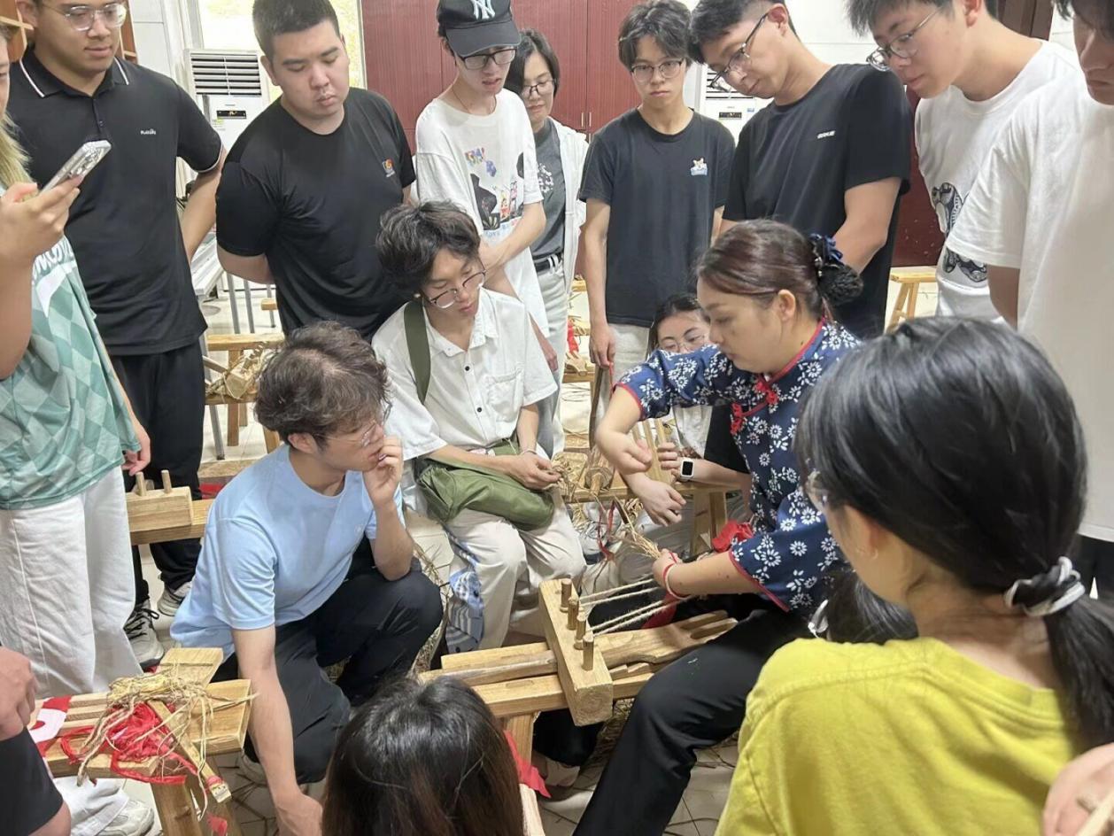 稻草中的革命密碼 下午,在沈柏羽老師的課堂上,稻草在實踐隊員們的指尖翻轉、編織。從搓草繩的生澀到編鞋底的專注,學員們親手制作紅軍草鞋,深刻體會當年紅軍戰士們雙腳走天下的艱辛。