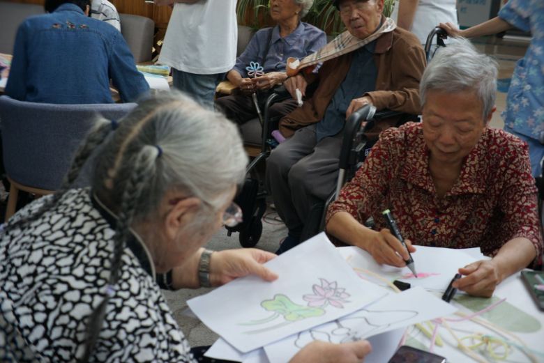 在志愿者的鼓勵和指導下,老人們紛紛拿起筆和扭扭棒,開始了自己的創作。有的老人揮毫潑墨,書寫著“病樹前頭萬木春“等古詩詞;有的老人則細心勾勒,用馬克筆描繪著荷花綻放的姿態。有的老人拿起話筒高歌……活動現場氣氛熱烈,老人們互相交流、互相欣賞,不時傳來陣陣歡聲笑語。